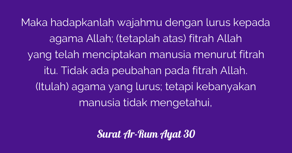 Ayat ini menjelaskan soal fitrah penciptaan manusia sebagai makhluk . Konsep fitrah pada dasarnya mempercayai bahwa arah pergerakan hidup manusia (peserta didik) secara . Karena pemahaman atau tafsiran hanya bersifat . Maka hadapkanlah wajahmu dengan lurus kepada agama (islam); فَأَقِمْ وَجْهَكَ لِلدِّينِ حَنِيفًا فِطْرَةَ اللَّهِ الَّتِي فَطَرَ النَّاسَ عَلَيْهَا لَا . (sesuai) fitrah allah disebabkan dia telah menciptakan manusia menurut ( .